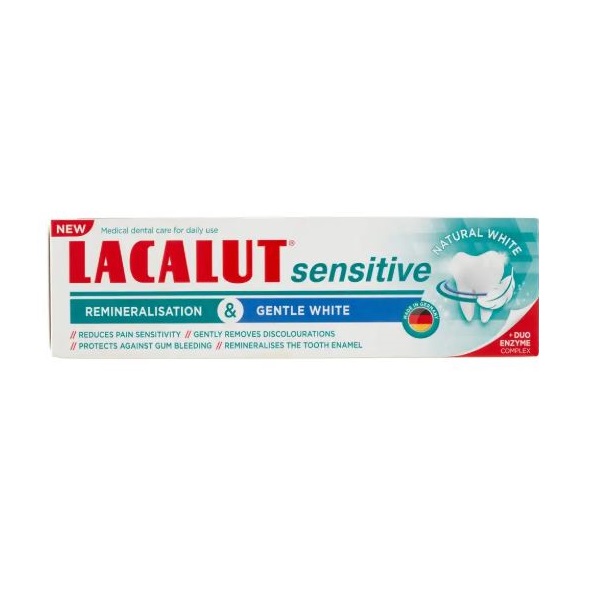 A Lacalut Sensitive Remineralisation & Gentle White fogkrém kifejezetten az érzékeny fogak ápolására lett kifejlesztve, miközben gyengéden segít visszaállítani a fogak természetes fehérségét.