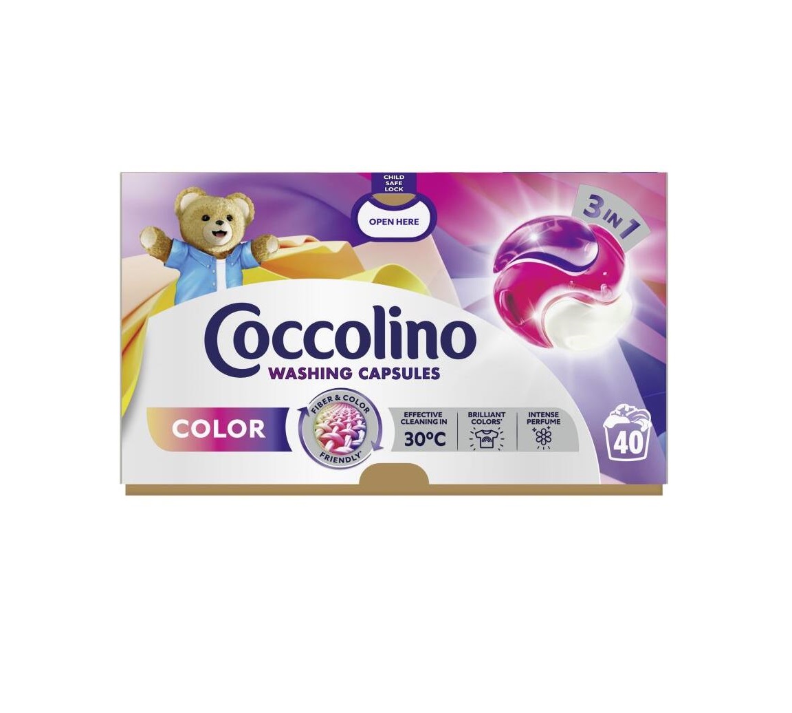 Előre csomagolt mosógél, színes mosáshoz, Coccolino care 3in1 lágyzselé kapszula